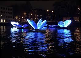 Hiernaast zie je lichtkunst. Ik vind dit specifiek plaatje zo mooi, omdat het water het licht prachtig weerkaatst.